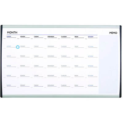 Plan your monthly itinerary more efficiently with this durable magnetic whiteboard calendar | Post photos and notations to the board with any magnet and jot down notes quickly with dry-erase marker | Durable monthly calendar doubles as bulletin board | Delivers quality planning and organizing performance in personal workstations | Extend surface life with Quartet cleaning solutions | Flexible mounting system secures to cubicles or dry-wall | Adjustable clips ensure straight and level installation | Lightweight Arc frame complements most decor | Due to freight costs, some orders may incur a delivery charge and this will vary depending on the order, particularly in regional areas- Delivery costs can be confirmed at the time of order