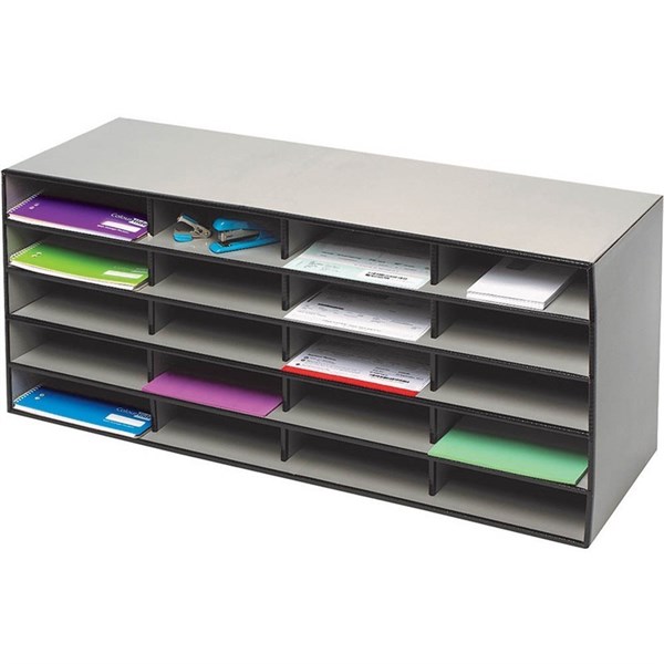 Marbig Literature Sorter | The Marbig literature sorter is a compact shelf unit for use in the office, mail room or home | 20 compartments for storing files, papers, brochures, mail etc- | Can also be used as staff pigeon holes | Product contains 100% recycled content