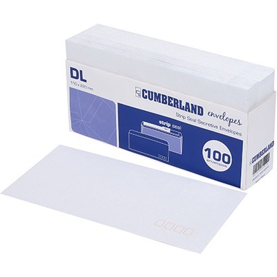CUMBERLAND DL ENVELOPES SECRETIVE WALLET PLAINFACE STRIP SEAL POST OFFICE SQUARES 80GSM 110 X 220MM WHITE TRAY 100