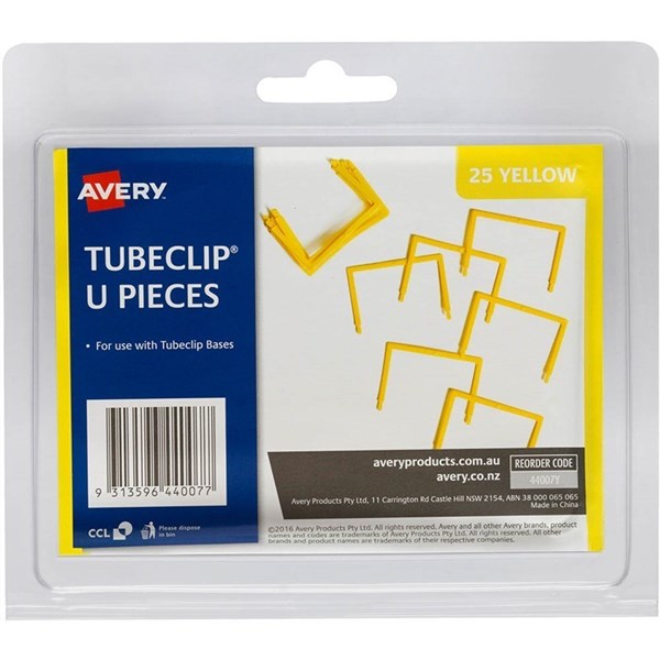 Finding a space saving solution is really not as daunting as you think | Avery Tubeclip 3 piece set is versatile and really is a great solution to save space | You don't even need to switch your filing system to enjoy this wonderful solution as Tubeclip can be used with either manilla files or shelf lateral files | The Tubeclip expands as the file fills in order to reduce wasted space | Individual U piece is available for refill | A refill option to standard 3 piece set | Available in yellow and blue colour