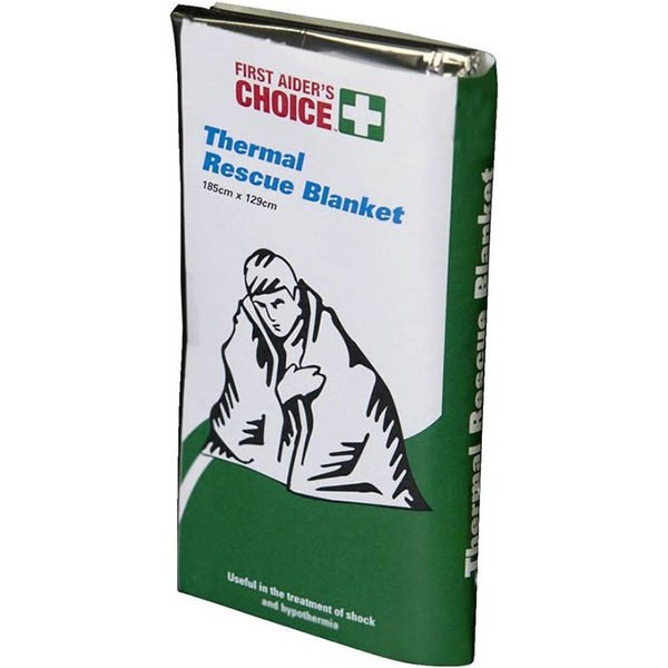 First Aiders Choice Emergency Thermal Blanket will help treat anyone suffering from shock and hypothermia, designed to retain body heat | Aluminium film blanket | Useful in retaining body heat | Useful in the treatment of shock and hypothermia | | GENERAL INFORMATION INTENDED PURPOSE | Made of metalized polyester film which reflect over 90% of reflected body heat, it can wrap over the body and against cold, wind, rain and heat.