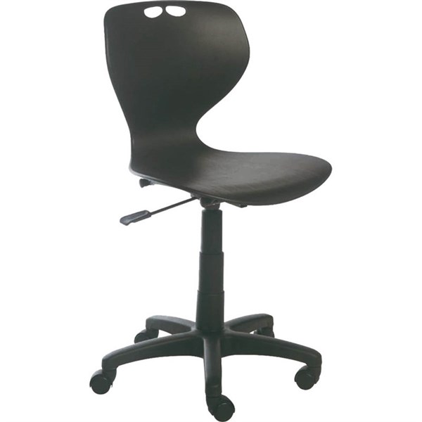 The MATA family of multi-purpose seats combines a simple yet distinctive design and efficient use of materials to offer trendy seating solutions at affordable prices | MATA's curvaceous seat shell can flex to accommodate reclining action and displays a pronounced lumbar curve, thus offering both support and flex in a very simple and low cost design | Moulded from recyclable polypropylene, it is easy to clean and resilient enough for commercial and institutional usage | Prominent ribs on the back reinforce the flexing movements and add unique style lines to the family of chairs | Moulded strong polypropylene chair shell | Soft wheel brake casters allow the seat to remain stationary when no load is applied | Gas lift seat