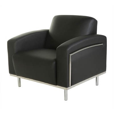 Make a lasting first impression with our stylish range of reception seating | The range of Sienna reception seating offers a cost effective solution to your reception requirements | All our reception seating is backed by a one year warranty | Single seater lounge with soft curve polyurethane black upholstery and chrome frame | Black PU Upholstery | Steel Chrome External Frame | 1 year warranty