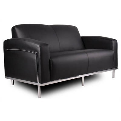 Make a lasting first impression with our stylish range of reception seating | The range of Sienna reception seating offers a cost effective solution to your reception requirements | All our reception seating is backed by a one year warranty | Two seater lounge with soft curve polyurethane black upholstery and chrome frame | Black PU Upholstery | Steel Chrome External Frame | 1 year warranty
