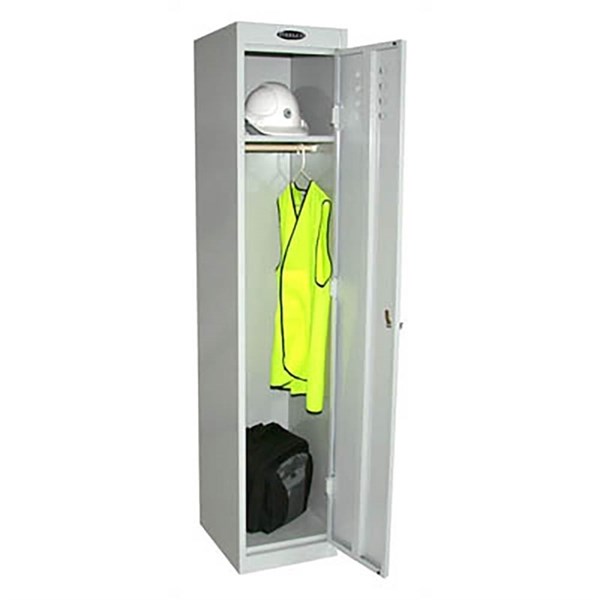 Steelco's Personnel Lockers have been designed with the versatility to offer compact and secure storage in multiple working environments | 1 Door- Bank of 1 | Flush mounted doors with 180 degree opening capability | Hanging rail included | Card holder provision on each locker door for easy identification | All locker doors fitted with ventilation holes | Key lock | Quality powder coated finish | 10 year product warranty | Disclaimer : Freestanding furniture may tip over if not properly secured