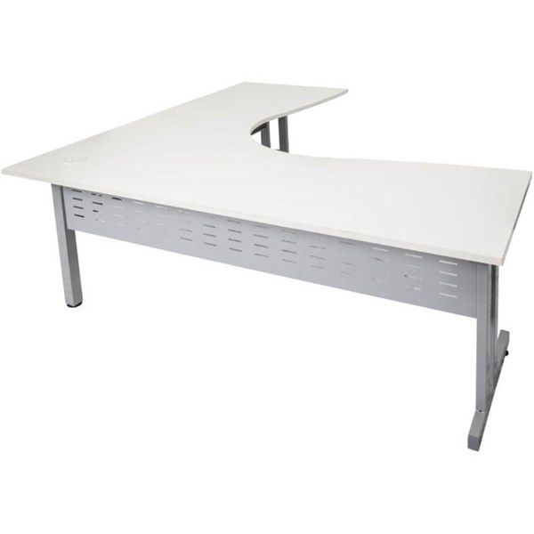 RAPID SPAN C LEG CORNER WORKSTATION WITH METAL MODESTY PANEL 1800 X 1800 X 700MM NATURAL WHITE/SILVER