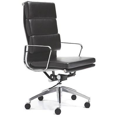 High back extra padded managers chair | soft leather padding | Central tilting mechanism | Adjustable tilting tension | Aluminium arms and base | Reinforced nylon casters | 3 year warranty | Some assembly required