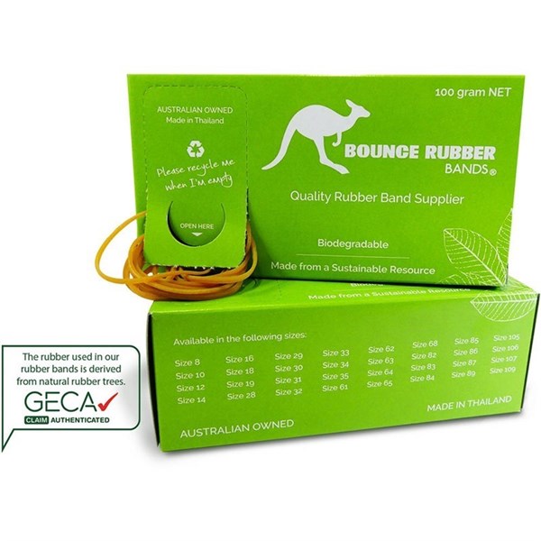 Bounce Rubber Bands high quality ecofriendly rubber bands | Rubber band are often used to bundle items together across many industries, in fact you may just be surprised at just how many industries actually use rubber bands | The humble rubber band is often an overlooked product that makes many peoples lives easier on a daily basis | You can keep your office organised with Bounce Rubber Bands | | GECA Claim Authenticated: The rubber used in Bounce Rubber bands is derived from natural rubber trees