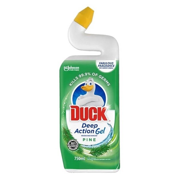 Duck is a specially formulated to kill germs and remove difficult stains on contact to ensure your toilet is always hygienically clean and fresh | Duck can also be used to clean the outside of the toilet | Kills germs and removes difficult stains on contact, to ensure your toilet is always hygienically clean and fresh | Duck has a specially designed bottle neck to allow for easy application of the product up under the rim of the toilet where germs lurk | At the same time, the neck acts as a measuring device to ensure the right amount of product is used, thus eliminating wastage | Specially formulated with a commercial grade disinfectant to kill germs, clean and freshen toilets | Duck has a pine fragrance, which imparts a fresh, clean smell | Hygienically clean and fresh |This product is sold individually- For CTN quantities, please order in multiples of 6