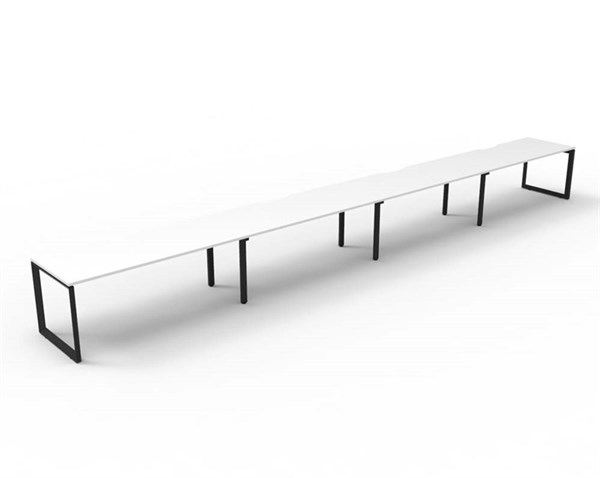 Maximise floor space and leg room with the stylish Rapid Infinity bench system, now available in the Deluxe range with 750(d)mm worktops and new coloured tops and frames | Available in a variety of configurations as straight benches or corner workstations in rows or pods to suit your office space | Deluxe Rapid Infinity 4 Person Single Sided Workstation - No Screen | Dual Cross Bar For Added Stability | E1 Enviroboard Melamine Worksurface | Adjustable Levelling Feet