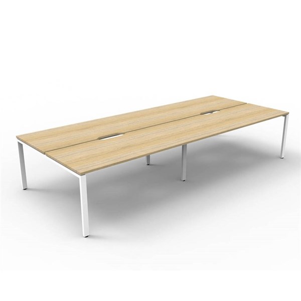 Maximise floor space and leg room with the stylish Rapid Infinity bench system, now available in the Deluxe range with 750(D)mm worktops and new coloured tops and frames | Available in a variety of configurations as straight benches or corner workstations in rows or pods to suit your office space | Deluxe Rapid Infinity 4 Person Double Sided Workstation - No Screen | Dual Cross Bar For Added Stability | E1 Enviroboard Melamine Worksurface | Adjustable Levelling Feet