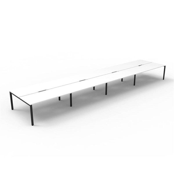Maximise floor space and leg room with the stylish Rapid Infinity bench system, now available in the Deluxe range with 750(d)mm worktops and new coloured tops and frames | Available in a variety of configurations as straight benches or corner workstations in rows or pods to suit your office space | Deluxe Rapid Infinity 8 Person Double Sided Workstation - No Screen | Dual Cross Bar For Added Stability | E1 Enviroboard Melamine Worksurface | Adjustable Levelling Feet