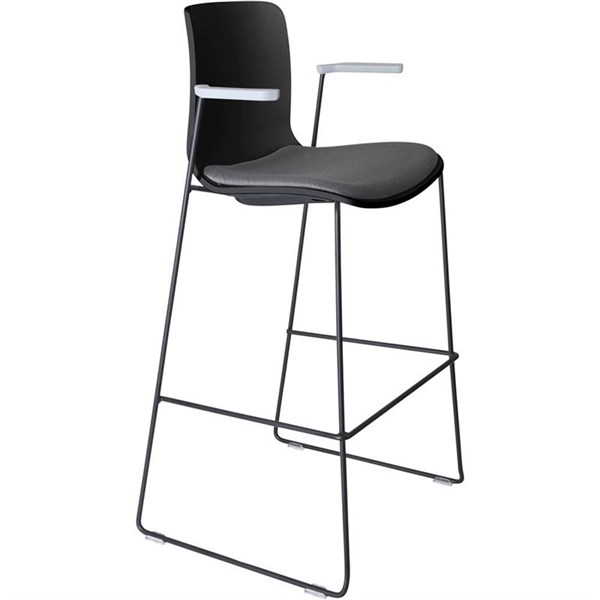 DAL ACTI BAR STOOL SLED BASE HIGH 760MM ARMS LIGHT GREY ARM-PADS AND BLACK POWDERCOAT FRAME BLACK POLYPROP SHELL