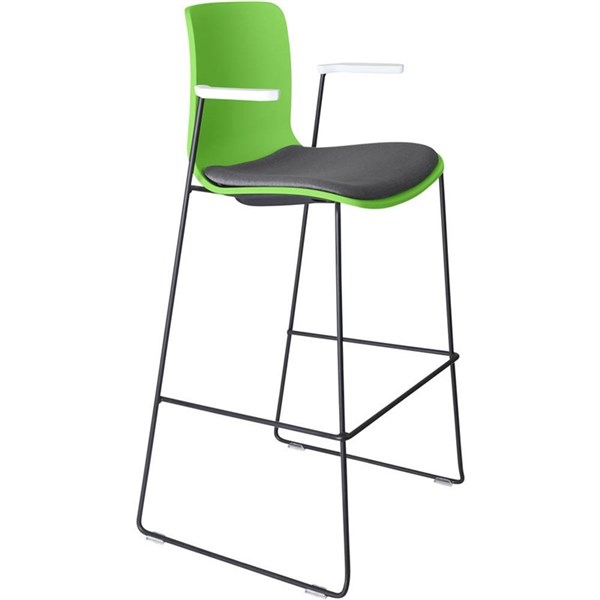 DAL ACTI BAR STOOL SLED BASE HIGH 760MM ARMS WHITE ARM-PADS AND BLACK POWDERCOAT FRAME GREEN POLYPROP SHELL