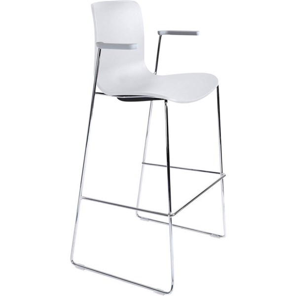 DAL ACTI BAR STOOL SLED BASE HIGH 760MM ARMS LIGHT GREY ARM-PADS AND CHROME FRAME WHITE POLYPROP SHELL
