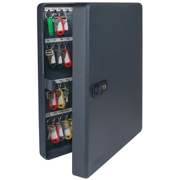 Helix Key cabinets are specifically designed to make key mangement much easier | Secure cabinet storage | Durable steel construction with a smart, black powder-coated finish | Metal key hooks accommodate most keys | Supplied with wall hanging kit, hook number and the required numer of key fobs