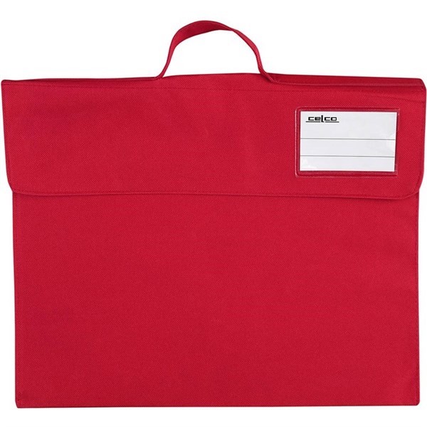 These Celco library bags are a great solution for students to keep their library books separate from the rest of their books and belongings | Made from heavy duty polyester with strong carry handle | Hook and loop closure | Clear front insert pocket for name card