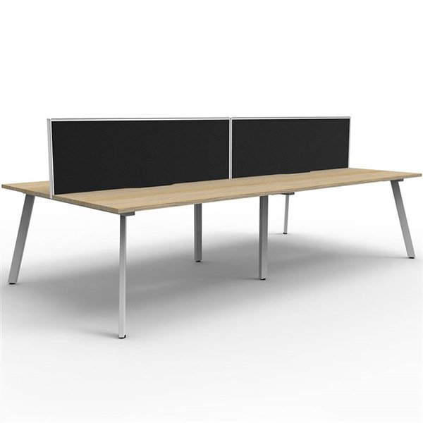 Maximise space and create an efficient working environment with Rapid Eternity double sided workstations | The stylish Eternity leg adds style to each workstation without being intrusive, while the recessed leg between joining workstations creates full leg access | Stylish 45 degree Eternity leg | Maximise office space | 750mm Depth work top per user | 30mm Cable access gap between users | Dual Cross Bar For Added Stability | E1 Enviroboard Melamine Worksurface | Adjustable Levelling Feet | Desk partition screen with matching Powdercoated frame | Backed by a 5 Year Warranty