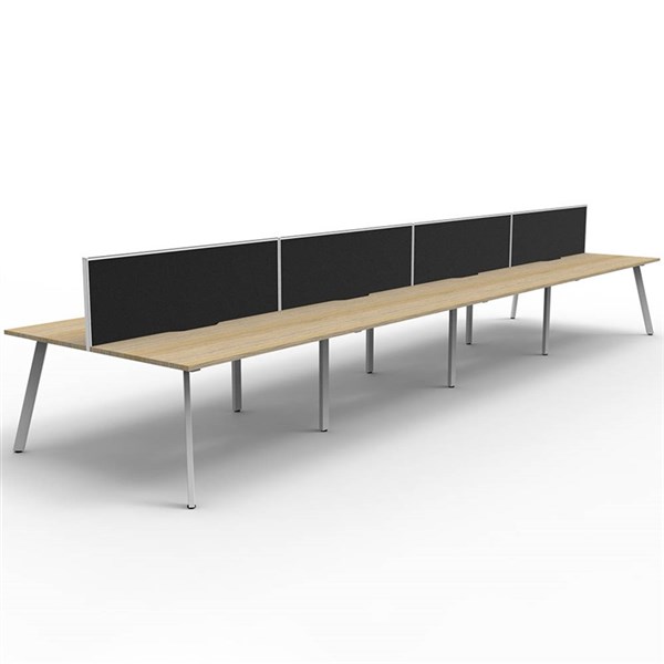 Maximise space and create an efficient working environment with Rapid Eternity double sided workstations | The stylish Eternity leg adds style to each workstation without being intrusive, while the recessed leg between joining workstations creates full leg access | Stylish 45 degree Eternity leg | Maximise office space | 750mm Depth work top per user | 30mm Cable access gap between users | Dual Cross Bar For Added Stability | E1 Enviroboard Melamine Worksurface | Adjustable Levelling Feet | Desk partition screen with matching Powdercoated frame | Backed by a 5 Year Warranty