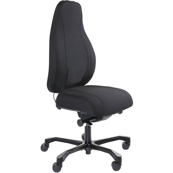 The Serati chair is an elegant and functional synchromech ergonomic chair | super comfortable for office use as well as a hard-working intensive use chair | Pro-control synchro mechanism | seat slide | back height adjustment | no arms | lumbar pump | 120mm gaslift | black aluminium base with footplates | covered in Gabriel Fighter 60999 black fabric