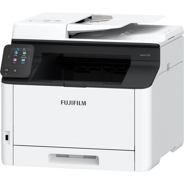 The Fujifilm Apeos C325Z A4 Colour Multifunction Printer is a Amazingly Compact Yet Reliable Print from and scan to your smart phones and tablets easily, using NFC and mobile printing applications, easy installation and easy fleet management for retail stores and enterprise offices, hassle-free for multiple manual settings | Setting cloning available for multiple-device installation | User management and security functions allow administrators to control who can access device functions | Caters to a wide printing needs from office to stores | Rich colour expression with LED printhead and IReCT | EA-Eco toner for fine text and fine lines | Image enhancement technology reproduces smooth diagonal lines | Prevents information leakage with Secure Print | SMBv3 / TLS1.3 supported for secure communication | Connect to wireless LAN with WPA-Enterprise | Interfaces: USB2.0, Wireless LAN (IEEE 802.11 b / g / n)