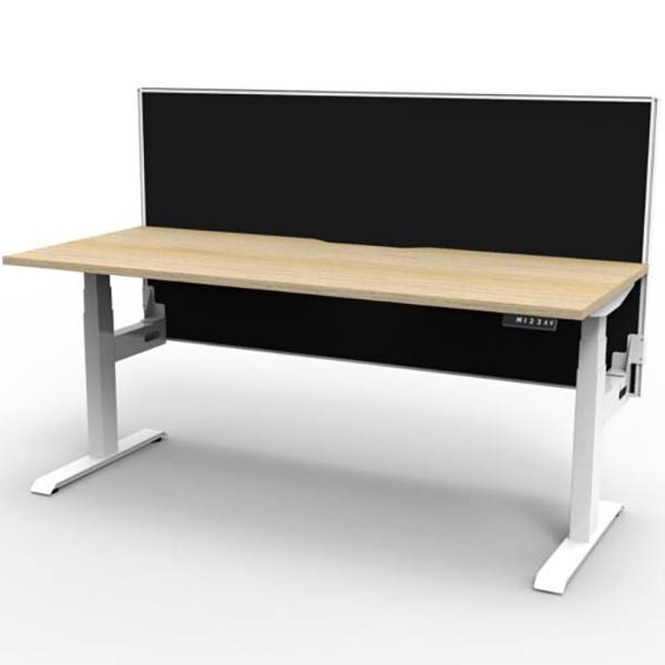 Rapidline Boost Plus SIngle Side | Boost Plus has full range of configurations, from a Single, corner workstation or desk and return to Back to Back workstations with screen division | The range meets Australian standards for height range, has an LED digital controller, anti collision and anti tilt as standard and a 120kg plus weight rating | With low noise emission and easy assembly Boost Plus meets all Height Adjustable workstation requirements | The optional integrated cable tray and snake add ons make managing wiring simple | Dual motor - 3 stage motorised legs | Smooth and quiet adjustment at 38mm per second | Digital Control Panel With 3 Pre-Set Positions, LED Display Panel, Keypad Safety Lock, Reminder Alarm Setting | Anti-collision and anti-tilt safety features | Optional Portable Battery Packs allows desk mobility free from GPOs | Height range of 620 to 1270mm | 750mm depth top with scalloped cable access | Additional Add ons available - Cable Snake, Cable Tray Bridge, Battery Pack or Bluetooth control box | Available in 1200mm, 1500mm or 1800mm wide | Backed by a 10-year warranty