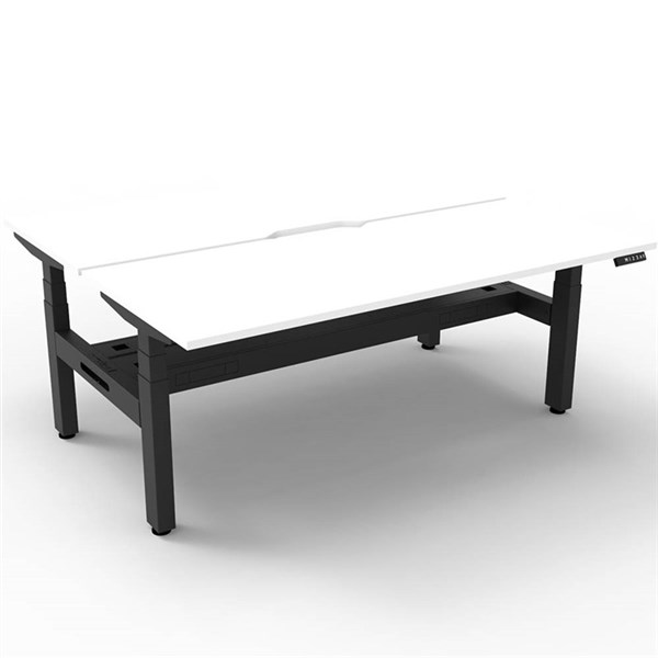 Rapidline Boost Plus Back to Back | Boost Plus has full range of configurations, from a Single, corner workstation or desk and return to Back to Back workstations with screen division | The range meets Australian standards for height range, has an LED digital controller, anti collision and anti tilt as standard and a 120kg plus weight rating | With low noise emission and easy assembly Boost Plus meets all Height Adjustable workstation requirements | The optional integrated cable tray and snake add ons make managing wiring simple | Dual motor - 3 stage motorised legs | Smooth and quiet adjustment at 38mm per second | Digital Control Panel With 3 Pre-Set Positions, LED Display Panel, Keypad Safety Lock, Reminder Alarm Setting | Anti-collision and anti-tilt safety features | Optional Portable Battery Packs allows desk mobility free from GPOs | Height range of 620 to 1270mm | 750mm depth top with scalloped cable access | Additional Add ons available - Cable Snake, Cable Tray Bridge, Battery Pack or Bluetooth control box | Available in 1200mm, 1500mm or 1800mm wide | Backed by a 10-year warranty