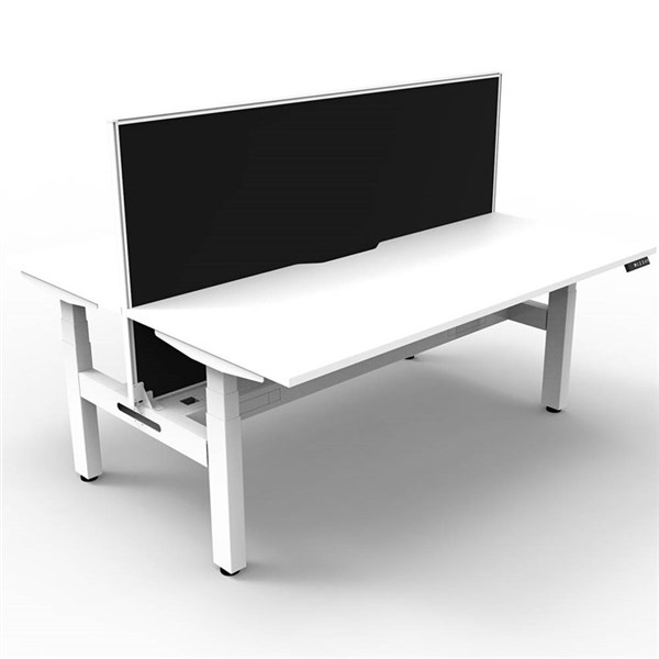 RAPIDLINE BOOST PLUS HEIGHT ADJUSTABLE DOUBLE SIDED WORKSTATION WITH SCREEN / CABLE TRAY 1500 X 750MM NATURAL WHITE TOP / WHITE FRAME / BLACK SCREEN