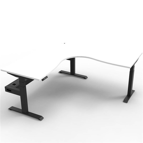 Rapidline Boost Plus Corner | Boost Plus has full range of configurations, from a Single, corner workstation or desk and return to Back to Back workstations with screen division | The range meets Australian standards for height range, has an LED digital controller, anti collision and anti tilt as standard and a 140kg plus weight rating | With low noise emission and easy assembly Boost Plus meets all Height Adjustable workstation requirements | The optional integrated cable tray and snake add ons make Managing wiring simple | Dual motor - 3 stage motorised legs | Smooth and quiet adjustment at 38mm per second | Digital Control Panel With 3 Pre-Set Positions, LED Display Panel, Keypad Safety Lock, Reminder Alarm Setting | Anti-collision and anti-tilt safety features | Optional Portable Battery Packs allows desk mobility free from GPOs | Height range of 620 to 1270mm | 750mm depth top with scalloped cable access | Additional Add ons available - Cable Snake, Cable Tray Bridge, Battery Pack or Bluetooth control box | Available in 1500 x 1500mm, 1800 x 1500mm or 1800 x 1800mm wide | Backed by a 10-year warranty