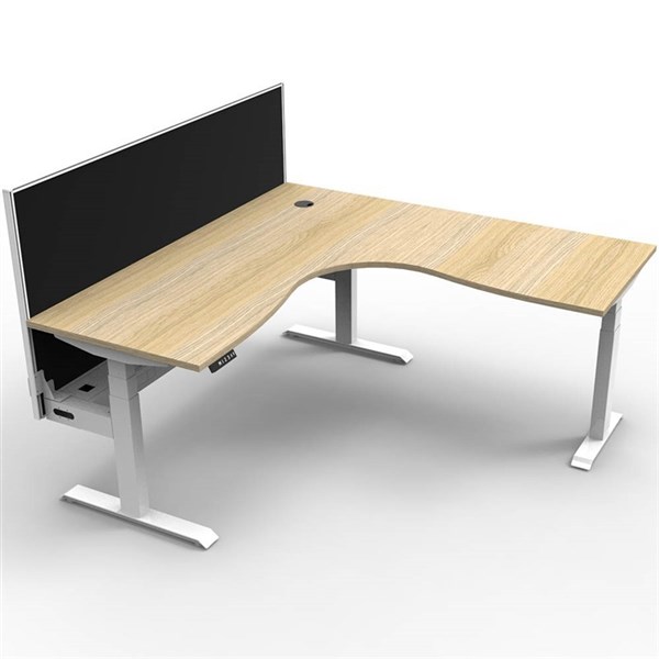 RAPIDLINE BOOST PLUS HEIGHT ADJUSTABLE CORNER WORKSTATION WITH SCREEN / CABLE TRAY 1800 X 1800 X 750MM NATURAL OAK TOP / WHITE FRAME / BLACK SCREEN