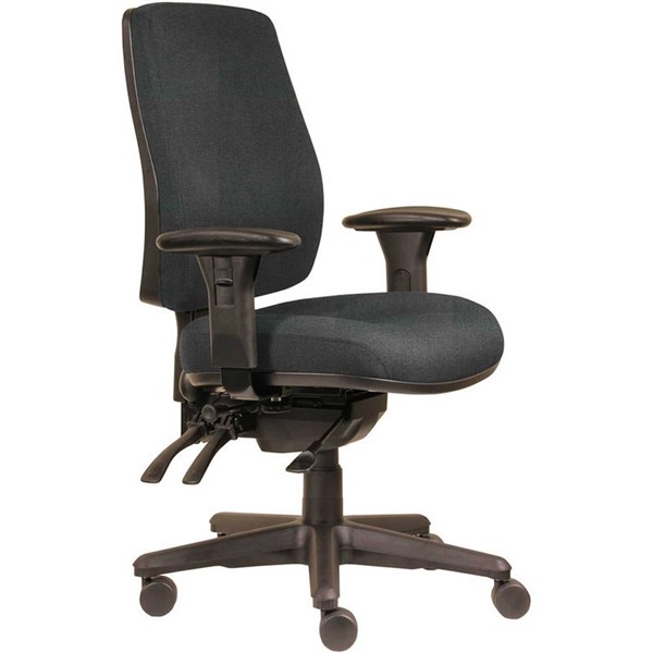 Provide the right support for your body while you work! The Spark ErgoSelect chair has a modern look and promotes an ergonomically correct seating position while being exceptionally comfortable | This chair features a supportive high back with arms and a lumbar adjustment pump | Comes with a heavy duty 3 lever multifunction seat mechanism with adjustable seat slide, ratchet height adjustable back and a 130mm gas lift | Upholstered in Warwick Gravity fabric, colour Slate | Fully adjustable seat tilt | Fully adjustable back height | Fully adjustable back angle | Fully adjustable seat height and depth | Adjustable lumbar pump in back