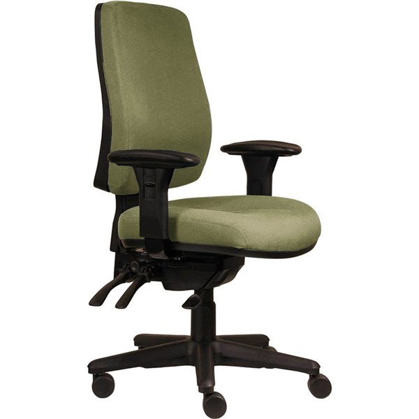 Provide the right support for your body while you work! The Spark ErgoSelect chair has a modern look and promotes an ergonomically correct seating position while being exceptionally comfortable | This chair features a supportive high back with arms and a lumbar adjustment pump | Comes with a heavy duty 3 lever multifunction seat mechanism with adjustable seat slide, ratchet height adjustable back and a 130mm gas lift | Upholstered in Warwick Gravity fabric, colour Apple | Fully adjustable seat tilt | Fully adjustable back height | Fully adjustable back angle | Fully adjustable seat height and depth | Adjustable lumbar pump in back