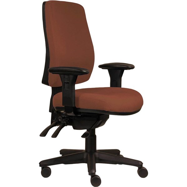 Provide the right support for your body while you work! The Spark ErgoSelect chair has a modern look and promotes an ergonomically correct seating position while being exceptionally comfortable | This chair features a supportive high back with arms and a lumbar adjustment pump | Comes with a heavy duty 3 lever multifunction seat mechanism with adjustable seat slide, ratchet height adjustable back and a 130mm gas lift | Upholstered in Warwick Gravity fabric, colour Brick | Fully adjustable seat tilt | Fully adjustable back height | Fully adjustable back angle | Fully adjustable seat height and depth | Adjustable lumbar pump in back