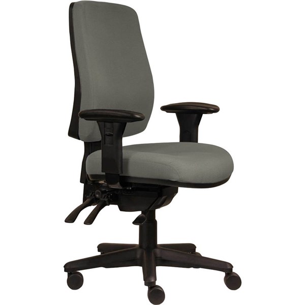 Provide the right support for your body while you work! The Spark ErgoSelect chair has a modern look and promotes an ergonomically correct seating position while being exceptionally comfortable | This chair features a supportive high back with arms and a lumbar adjustment pump | Comes with a heavy duty 3 lever multifunction seat mechanism with adjustable seat slide, ratchet height adjustable back and a 130mm gas lift | Upholstered in Warwick Gravity fabric, colour Mocha | Fully adjustable seat tilt | Fully adjustable back height | Fully adjustable back angle | Fully adjustable seat height and depth | Adjustable lumbar pump in back