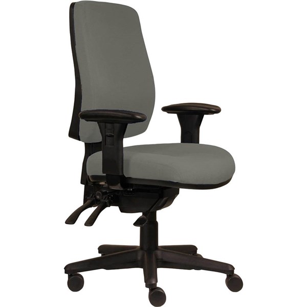 Provide the right support for your body while you work! The Spark ErgoSelect chair has a modern look and promotes an ergonomically correct seating position while being exceptionally comfortable | This chair features a supportive high back with arms and a lumbar adjustment pump | Comes with a heavy duty 3 lever multifunction seat mechanism with adjustable seat slide, ratchet height adjustable back and a 130mm gas lift | Upholstered in Warwick Gravity fabric, colour Steel | Fully adjustable seat tilt | Fully adjustable back height | Fully adjustable back angle | Fully adjustable seat height and depth | Adjustable lumbar pump in back
