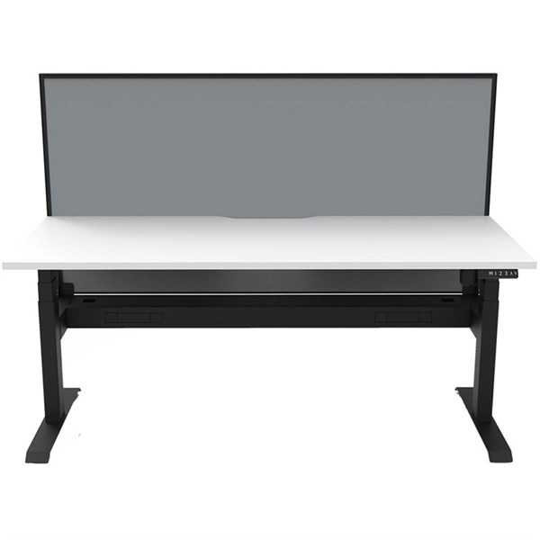 Rapidline Boost Light SIngle Workstation | Boost Light has a visible single motor underframe in powdercoat | Leg column size: 90x60mm, desk mounting top plate size: 500mm | Digital control panel with 3 pre-set positions, LED display panel, keypad safety lock & reminder alarm setting | Anti-collision technology, noise emission of less than 50DB | Lifting capacity of 80kg with a max speed of 25mm per second | 700mm wide foot size with adjustable leveling feet | Overall height of 1330mm when fitted with screens | E0 rated tops available in Natural White or Natural Oak | Desks available in 1200mm, 1500mm & 1800mm with a scalloped edge for cable access | Available add-ons: Cable tray for cable tidy or pinnable privacy screen | 10 year warranty