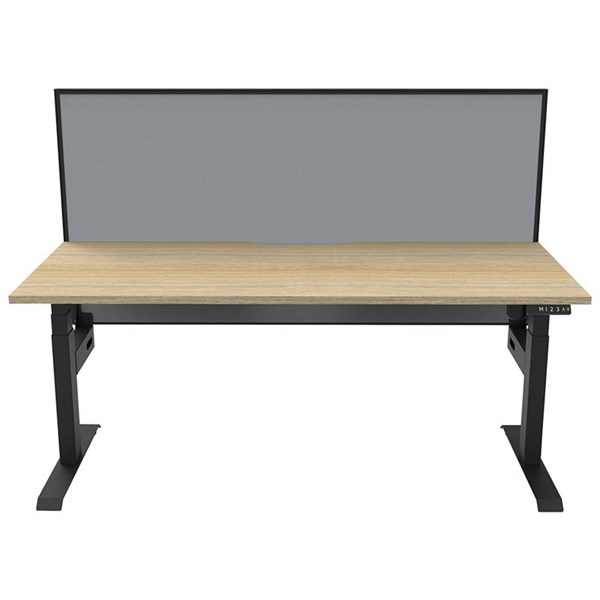 Rapidline Boost Light SIngle Workstation | Boost Light has a visible single motor underframe in powdercoat | Leg column size: 90x60mm, desk mounting top plate size: 500mm | Digital control panel with 3 pre-set positions, LED display panel, keypad safety lock & reminder alarm setting | Anti-collision technology, noise emission of less than 50DB | Lifting capacity of 80kg with a max speed of 25mm per second | 700mm wide foot size with adjustable leveling feet | Overall height of 1330mm when fitted with screens | E0 rated tops available in Natural White or Natural Oak | Desks available in 1200mm, 1500mm & 1800mm with a scalloped edge for cable access | Available add-ons: Cable tray for cable tidy or pinnable privacy screen | 10 year warranty