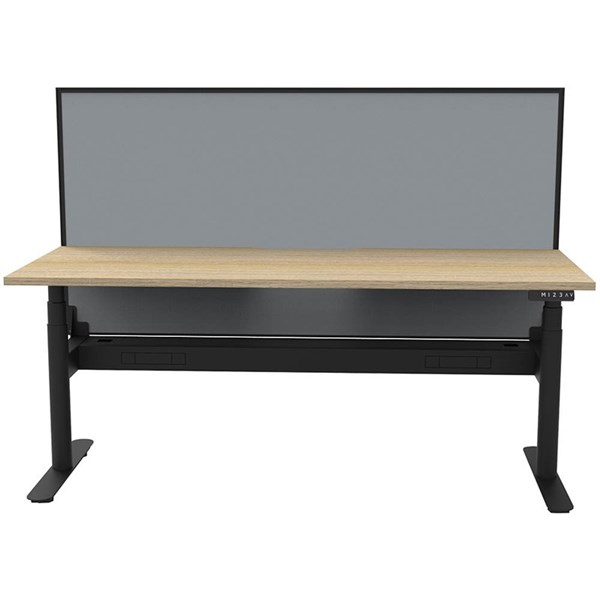 Rapidline HALO+ Single Workstation | HALO+ has a hidden dual motor underframe in powdercoat | 70mm diameter round column legs | Digital control panel with 3 pre-set positions, LED display panel,keypad safety lock & reminder alarm setting | Anti-collision technology, noise emission of less than 50DB | Lifting capacity of 120kg with a max speed of 38mm per second | 700mm wide foot size with adjustable leveling feet, return foot: 700mm | Overall height of 1330mm when fitted with screens | E0 rated tops available in Natural White or Natural Oak | Comes in single desk, back to back or corner workstations | Desks available in 1200mm, 1500mm & 1800mm with ascalloped edge for cable access | Available add-ons: Cable tray for cable tidy or pinnable privacy screen | 10 year warranty