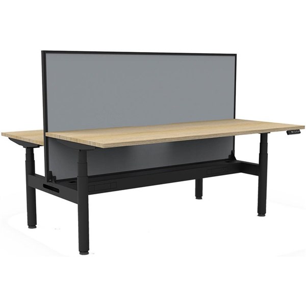Rapidline HALO+ Back to Back Workstation | HALO+ has a hidden dual motor underframe in powdercoat | 70mm diameter round column legs | Digital control panel with 3 pre-set positions, LED display panel, keypad safety lock & reminder alarm setting | Anti-collision technology, noise emission of less than 50DB | Lifting capacity of 120kg per desk with a max speed of 38mm per second | 700mm wide foot size with adjustable leveling feet, return foot: 700mm | Overall height of 1330mm when fitted with screens | E0 rated tops available in Natural White or Natural Oak | Comes in single desk, back to back or corner workstations | Desks available in 1200mm, 1500mm & 1800mm with ascalloped edge for cable access | Available add-ons: Cable tray for cable tidy or pinnable privacy screen | 10 year warranty