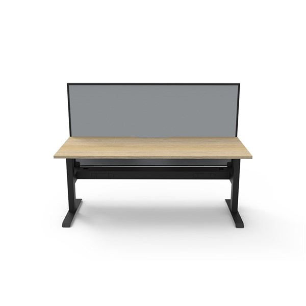 RAPIDLINE BOOST STATIC SINGLE SIDED WORKSTATION WITH SCREEN AND CABLE TRAY 1800MM NATURAL OAK TOP / BLACK FRAME / GREY SCREEN