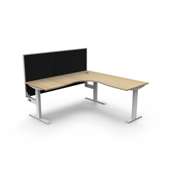 Rapidline Boost Static Corner Workstation, a reliable and stylish fixed-height desk that perfectly complements the Boost+ range | Designed to meet your workspace needs, this workstation combines functionality, durability, and a sleek aesthetic | The E0 Rated 25mm thick table top, finished in Natural Oak or White with rigid edging, not only adds a touch of elegance but also ensures durability and resistance to wear and tear | The 50mm D scallop cut out to the rear provides convenient cable management, keeping your workspace organised and clutter-free | The underframe, finished in a powder coat, offers stability and a modern look, seamlessly integrating with your office decor | With a 10-year warranty, you can trust in the quality and longevity of this workstation | Additional items are also available to enhance your workspace, including a cable tray complete with power and data punch-outs, ensuring efficient connectivity | Plus, a 30mm thick pinnable privacy screen adds privacy and versatility to your workstation