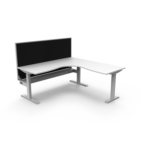 Rapidline Boost Static Corner Workstation, a reliable and stylish fixed-height desk that perfectly complements the Boost+ range | Designed to meet your workspace needs, this workstation combines functionality, durability, and a sleek aesthetic | The E0 Rated 25mm thick table top, finished in Natural Oak or White with rigid edging, not only adds a touch of elegance but also ensures durability and resistance to wear and tear | The 50mm D scallop cut out to the rear provides convenient cable management, keeping your workspace organised and clutter-free | The underframe, finished in a powder coat, offers stability and a modern look, seamlessly integrating with your office decor | With a 10-year warranty, you can trust in the quality and longevity of this workstation | Additional items are also available to enhance your workspace, including a cable tray complete with power and data punch-outs, ensuring efficient connectivity | Plus, a 30mm thick pinnable privacy screen adds privacy and versatility to your workstation