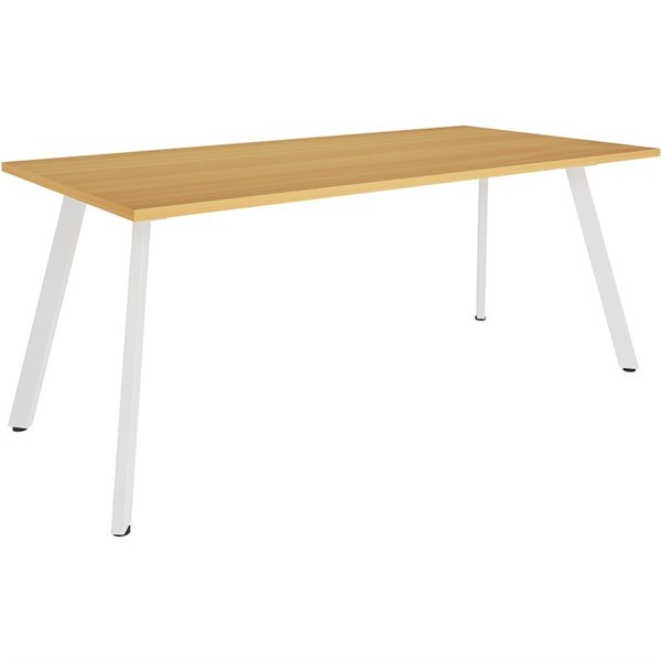 The Rapidline eternity meeting table range comes in 5 sizes and matches with the eternity workstation range | Mix and match your top colours with your base colours | Eternity Meeting Table | 25mm T Beech Worksurface | 60 x 30mm Splayed Leg Underframe In White Powdercoat | Dual Cross Bar For Added Stability | E0 Enviroboard Melamine Worksurface | 2mm Steel Gauge | Adjustable Levelling Feet | 5 Year Warranty