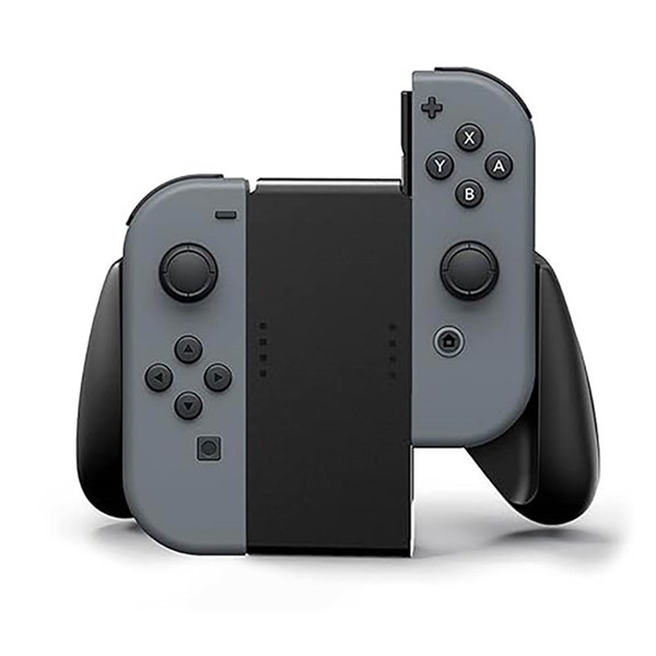 The comfort grip brings the left and right joy-con controllers together to make one comfortable controller, so you can play as long as you like | Ergonomic, rubber grips will keep your palms happy and your fingers from cramping at home or on the-go | Simply slide each joy-con controller down the rails until they click, and view the player indicator lights through the front