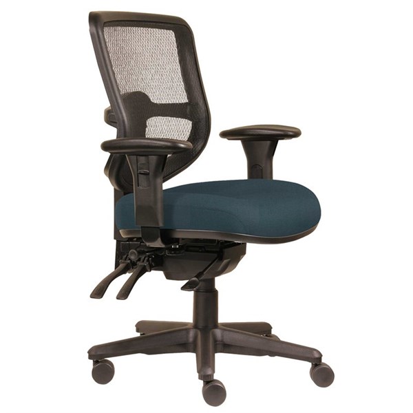 DAL ERGOSELECT SWIFT ERGONOMIC CHAIR MEDIUM MESH BACK 3 LEVER SEAT SLIDE BLACK NYLON BASE ADJUSTABLE ARMS DENIM