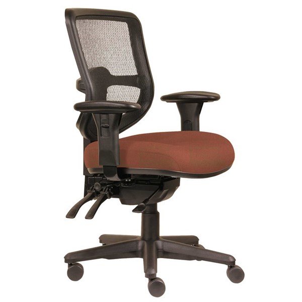 DAL ERGOSELECT SWIFT ERGONOMIC CHAIR MEDIUM MESH BACK 3 LEVER SEAT SLIDE BLACK NYLON BASE ADJUSTABLE ARMS BRICK