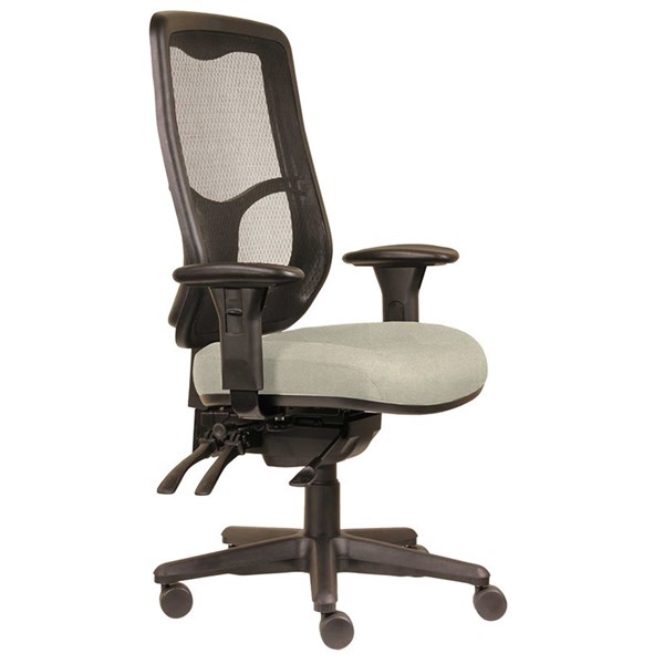 DAL ERGOSELECT SWIFT ERGONOMIC CHAIR HIGH MESH BACK 3 LEVER SEAT SLIDE BLACK NYLON BASE ADJUSTABLE ARMS DRIFTWOOD