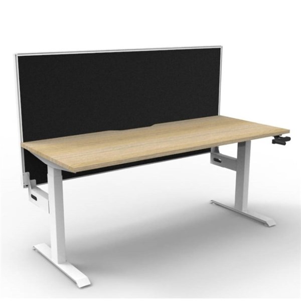 RAPIDLINE BOOST CRANK SINGLE SIDED WORKSTATION WITH SCREEN 1800 X 750 X 705MM NATURAL OAK TOP AND WHITE SATIN FRAME
