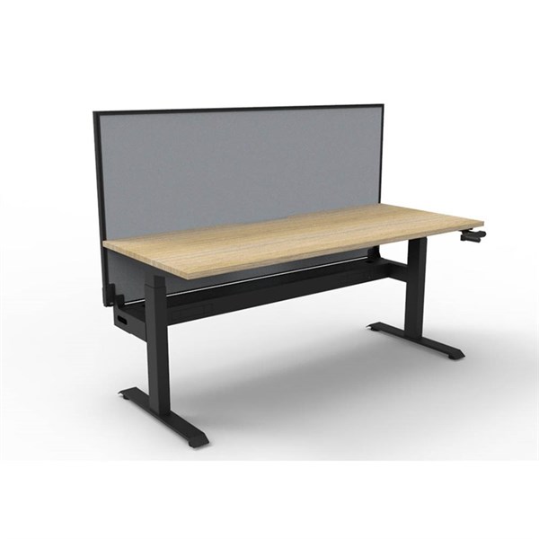 RAPIDLINE BOOST CRANK SINGLE SIDED WORKSTATION WITH CABLE TRAY AND SCREEN 1200 X 750 X 705MM NATURAL OAK TOP AND BLACK SATIN FRAME