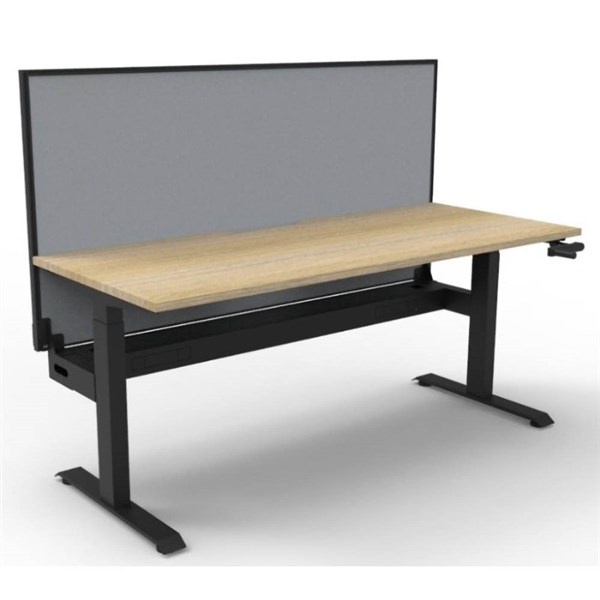 RAPIDLINE BOOST CRANK SINGLE SIDED WORKSTATION WITH CABLE TRAY AND SCREEN 1800 X 750 X 705MM NATURAL OAK TOP AND BLACK SATIN FRAME
